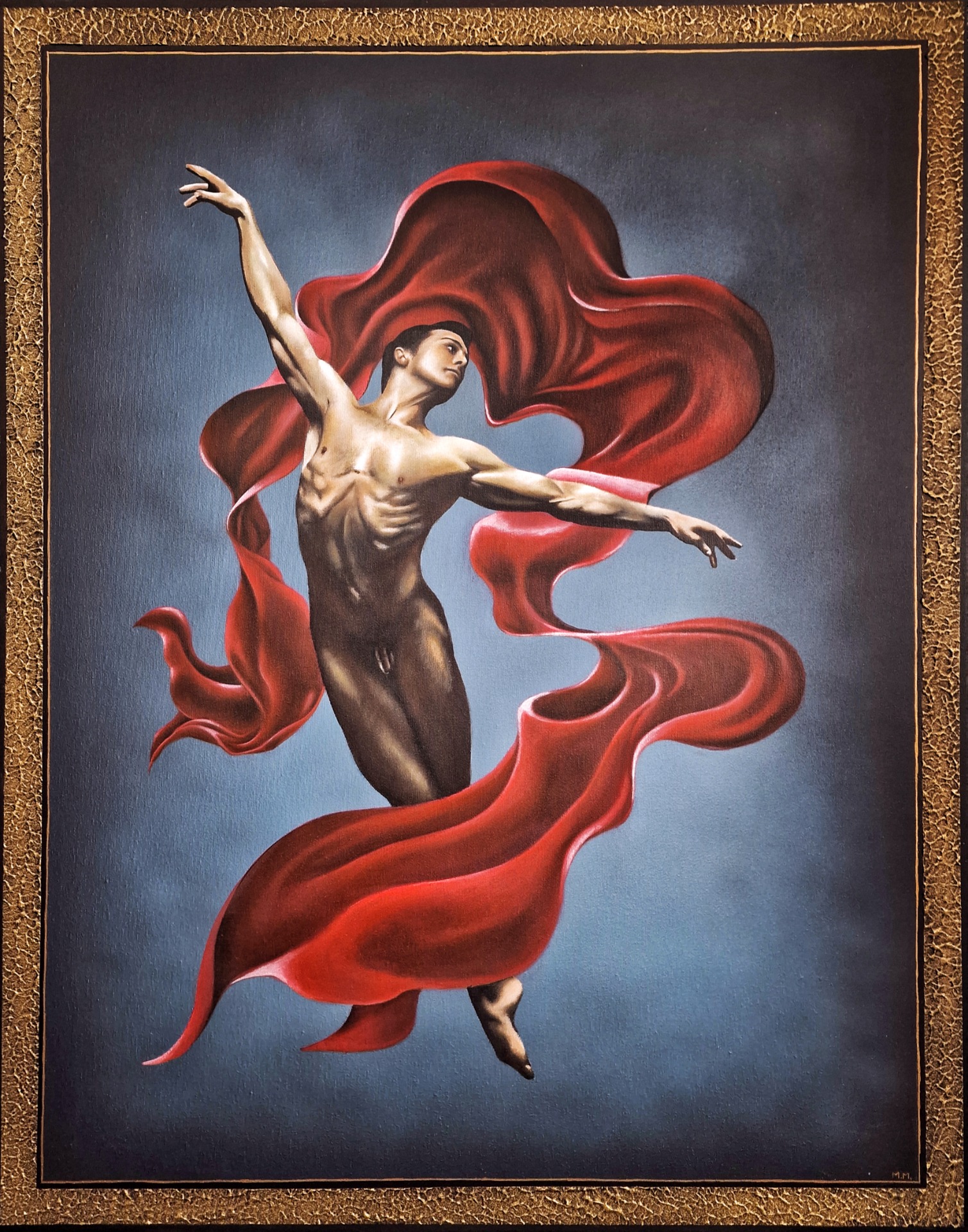 Ve své nejnovější malbě se věnuji zkoumání křehké hranice mezi fyzickou přítomností těla a nehmotnou intenzitou lidských emocí. Dílo s názvem "Srdce" pro mě nepředstavuje pouze studii figury v pohybu; vnímám jej především jako vizuální manifestaci vnitřního pulzu, který nás formuje a uvádí v chod.